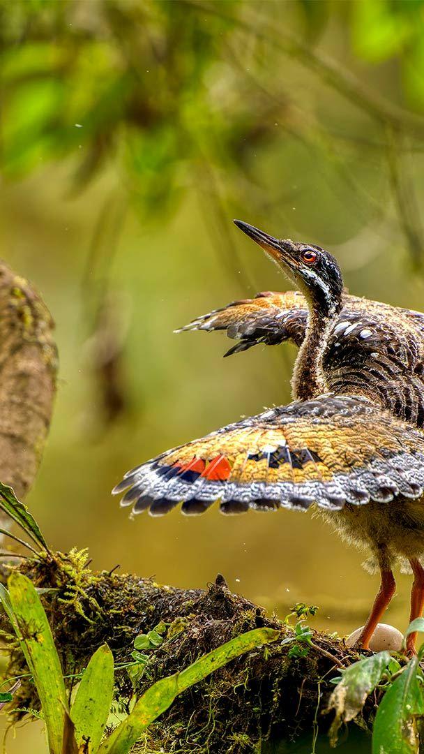 Juvenile sunbittern displaying at nest, Ecuador © Andy Rouse/naturepl.com