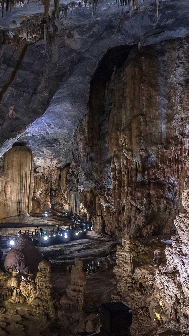 Paradise Cave makes a powerful first impression the moment visitors step inside. This vast limestone cavern lies deep within Phong Nha-Ke Bang National Park in central Vietnam, a region marked by rugged mountains and countless hidden caves. Stretching over 19 miles, Paradise Cave is one of Asia"s longest dry caves, and its scale is immediately apparent. High ceilings rise above the walkways, and layered patterns formed by mineral-rich water over millions of years line the walls.